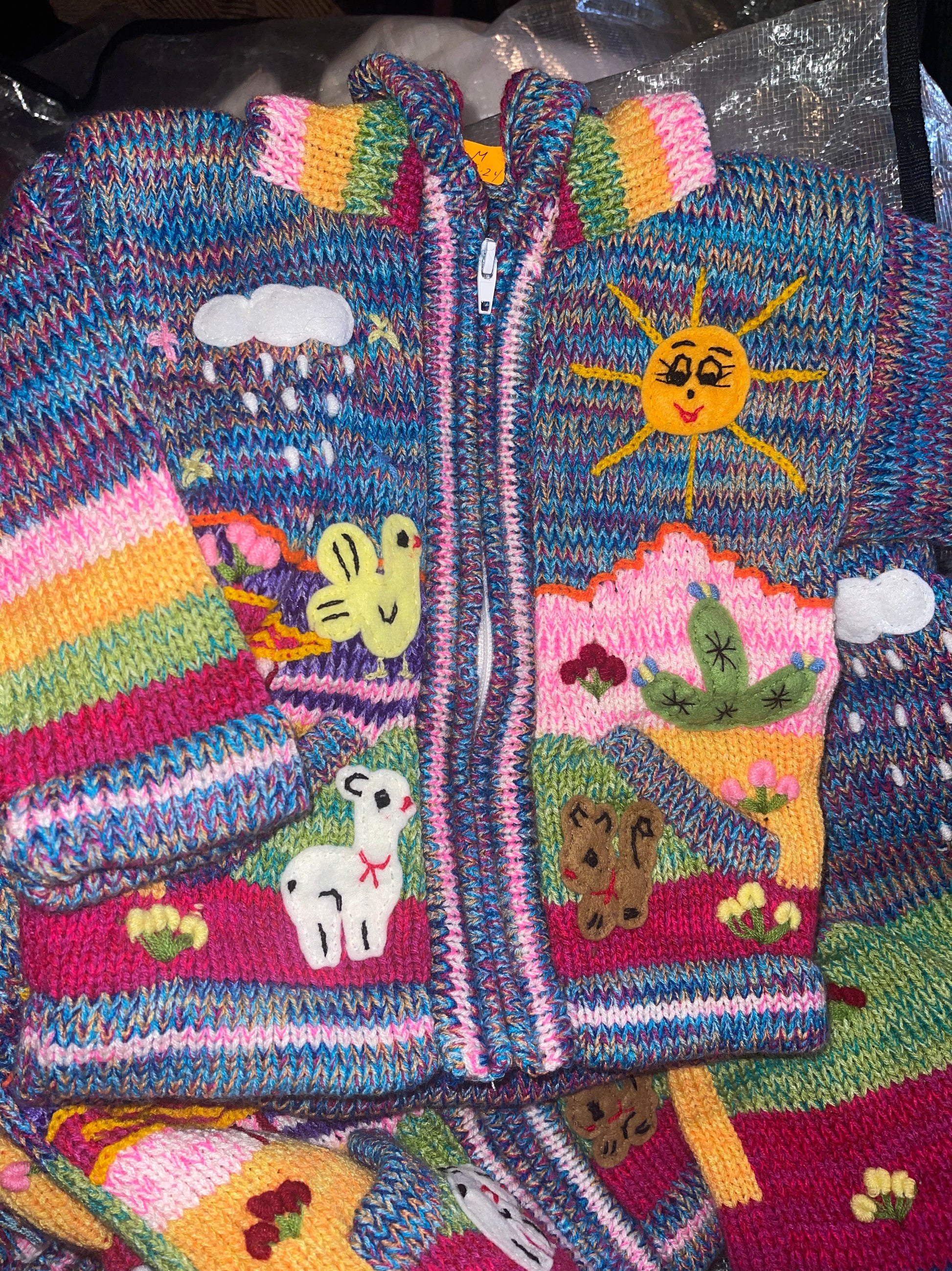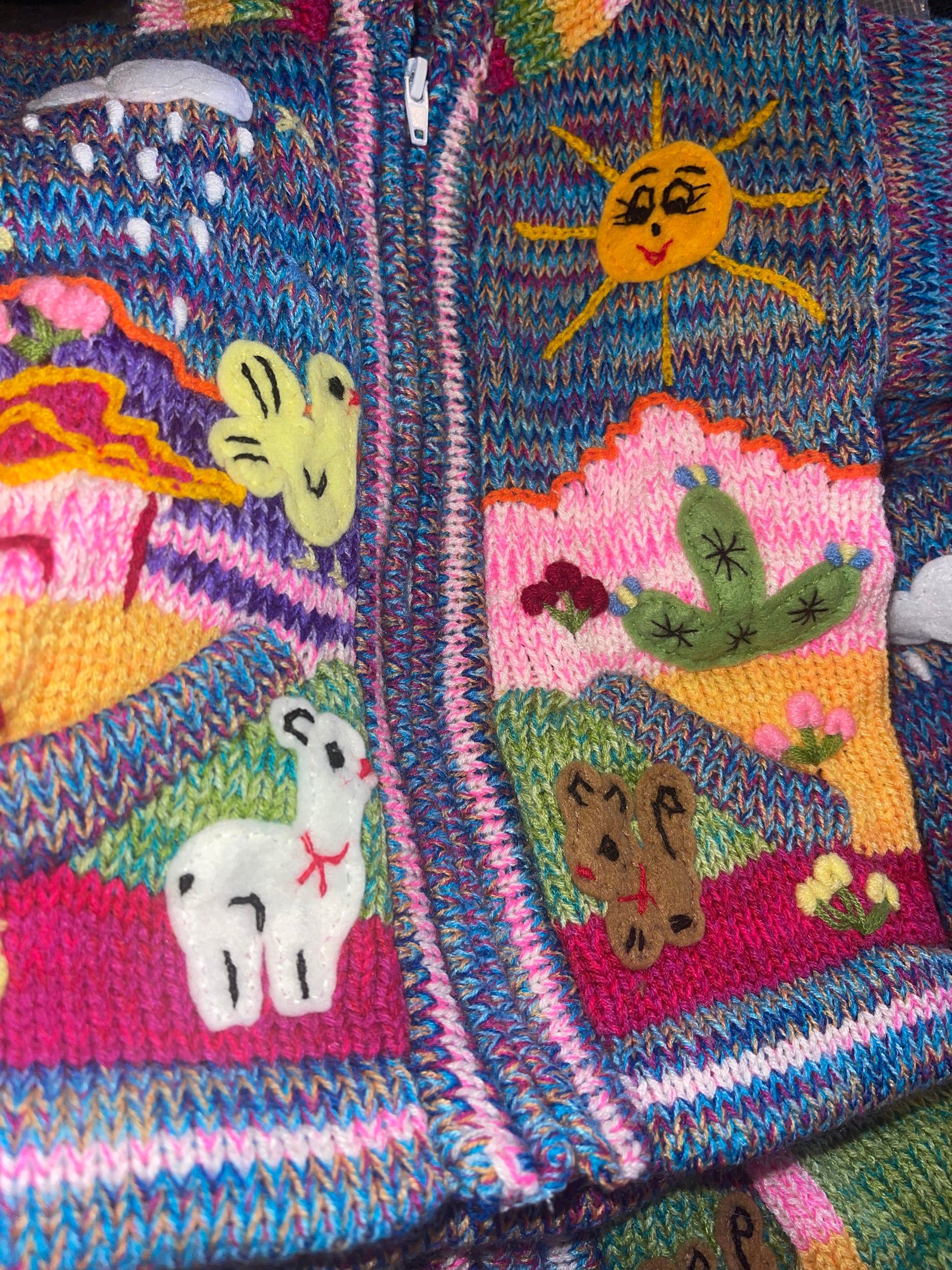 New Kids Wool Hooded Sweater made in Peru Hand Woven Embroidery detail Long Sleeves Zip up Hooded Pockets Multicolor pick your size and color